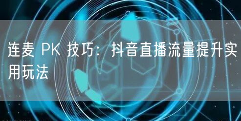 随着抖音直播的兴起,越来越多的人加入到直播行业中来。为了在激烈的竞争中脱颖而出,掌握一些连麦PK技巧和流量提升实用玩法显得尤为重要。本文将为大家分享一些有效的连麦PK技巧和抖音直播流量提升方法,助你轻松获取更多关注和流量。